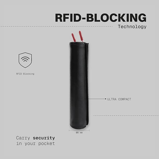 - Integrated RFID-blocking layer reduces risk of unauthorized scanning by blocking common signal frequencies used in contactless cards; combines security with slim form without adding bulk