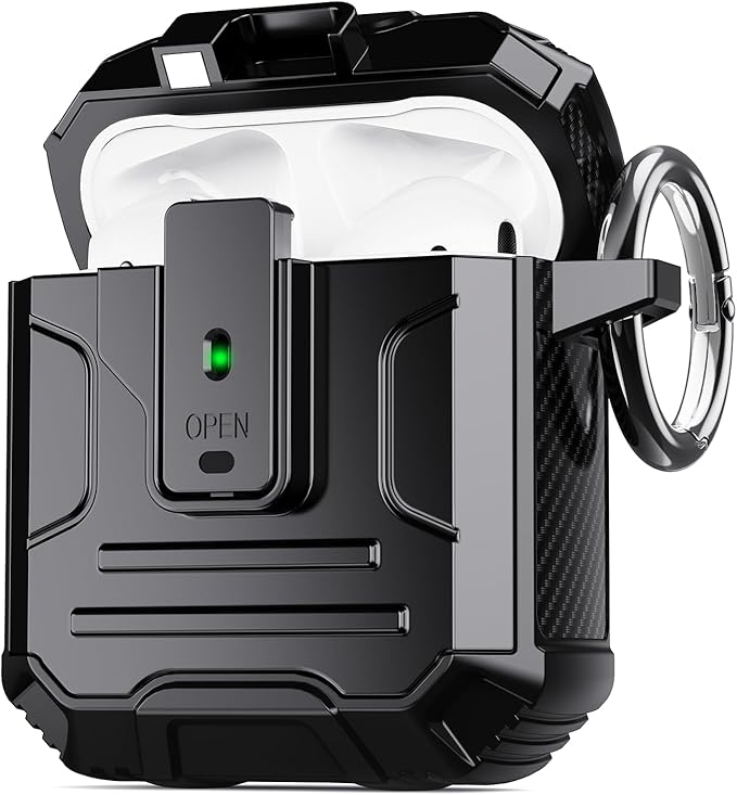 - [Upgraded Convenient Opening Design] The lockable function can firmly fix the upper cover of the shell, and you can easily open the top cover with one click. A magnetic mechanism ensures that the Airpods case opens automatically while the case remains securely closed.