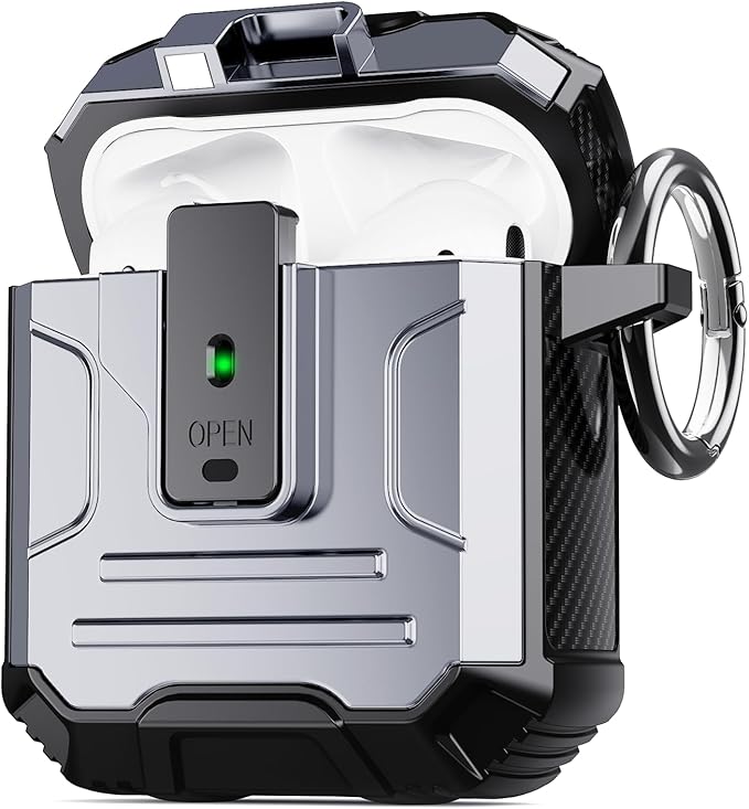 - [Upgraded Convenient Opening Design] The lockable function can firmly fix the upper cover of the shell, and you can easily open the top cover with one click. A magnetic mechanism ensures that the Airpods case opens automatically while the case remains securely closed.