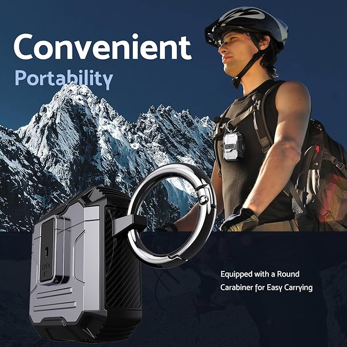 - [Convenient Charging & Portability] The case supports both wired and wireless charging for your Airpods case. The front LED remains visible to show the charging status. An included portable carabiner allows you to conveniently take your Airpods case with you during outdoor activities like climbing, hiking, and travelling.