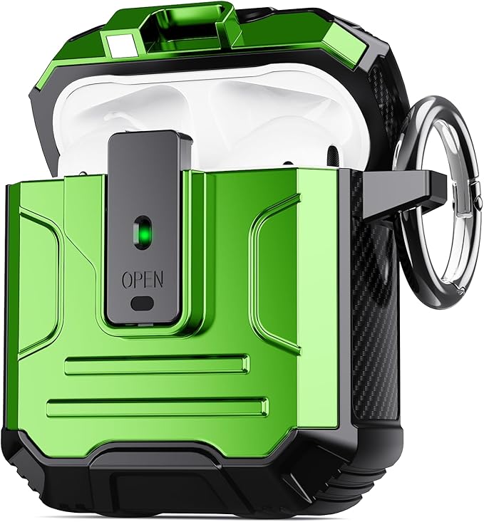 - [Upgraded Convenient Opening Design] The lockable function can firmly fix the upper cover of the shell, and you can easily open the top cover with one click. A magnetic mechanism ensures that the Airpods case opens automatically while the case remains securely closed.