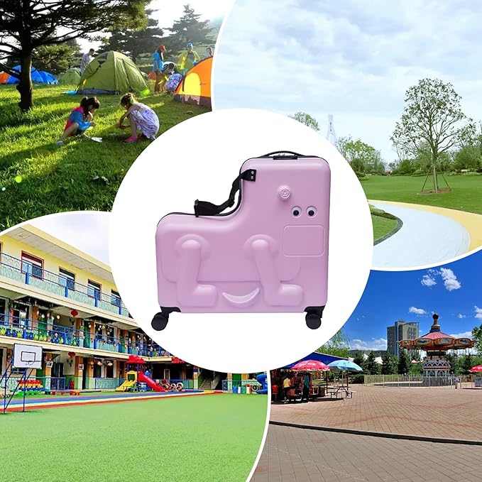 - High-quality Materials: This ride-on suitcase is made of PC, ABS, and aluminum alloy, which is strong, durable, wear-resistant, and waterproof. PC material is odorless, and tough so that children can use it more safely.