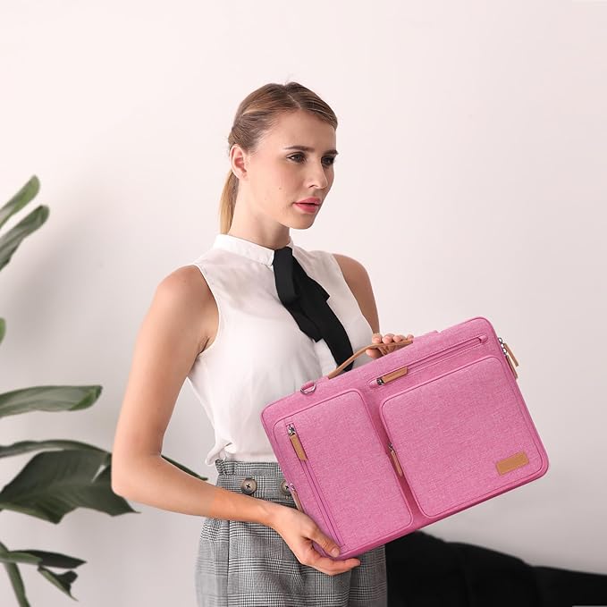 MOSISO 360 Protective Laptop Shoulder Bag,15-15.6 inch Computer Bags Compatible with MacBook Pro 16 inch, HP, Dell, Lenovo, Asus Notebook,Side Open Messenger Bag with 4 Zipper Pockets, Rose Red