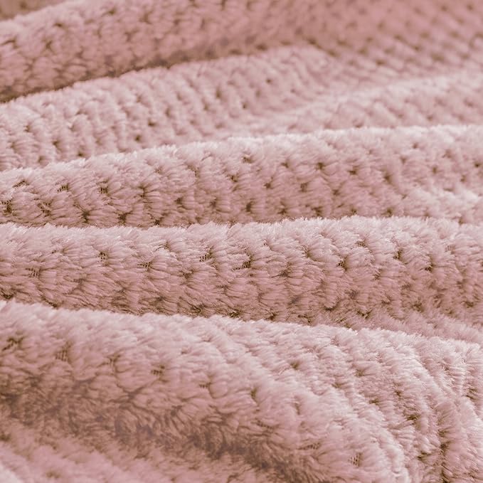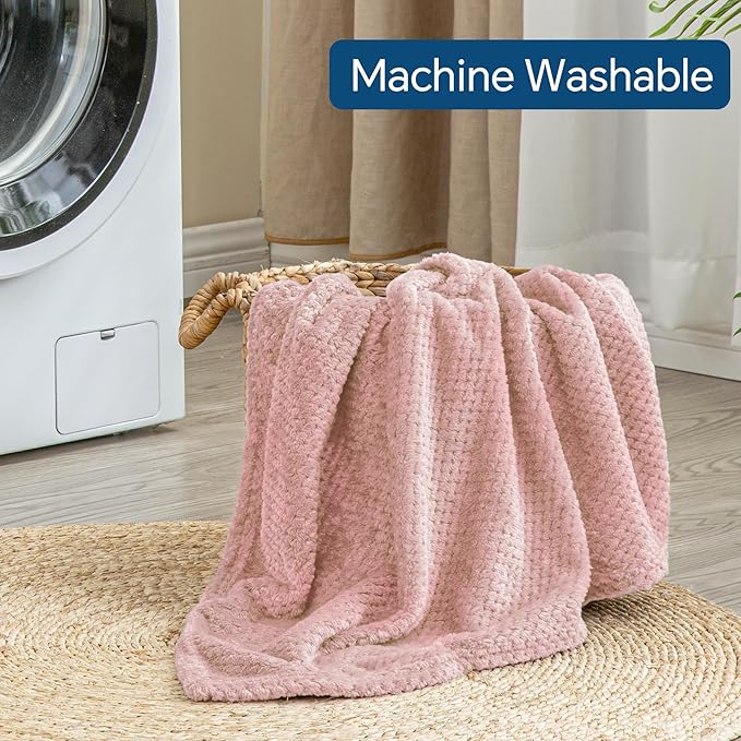 BEDELITE Travel Blanket with Bag, Ultra-Soft Jacquard Fleece Blanket with Luggage Sleeve & Backpack Clip, Airplane Blanket Travel Essentials, Pink