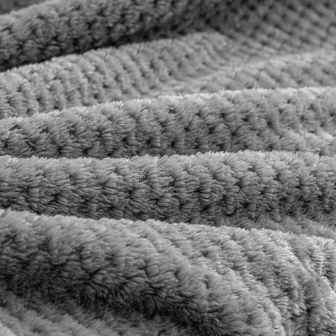 BEDELITE Travel Blanket with Bag, Ultra-Soft Jacquard Fleece Blanket with Luggage Sleeve & Backpack Clip, Airplane Blanket Travel Essentials, Grey