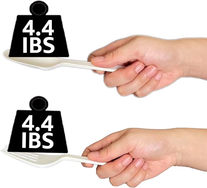 - 【✔️HEAVY WEIGHT And REUSABLE】Heavy-weight compostable tableware is thicker, stronger, and better quality than ordinary disposable tableware. You don't have to worry about breaking when eating peanut butter or bending when eating pasta. Dishwasher-safe and can be cleaned and reused if you like.