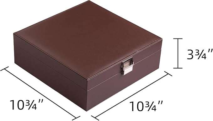 - 2 Layer and RemovabLe Divider:The jewelry storage box comes with double layer design for large storing capacity. The first layer comes with 25 compartments of 1¾ * 1¾ * 1 inch.The bottom layer comes with 25 compartments of 1⅞ * 1⅞ * 1½ inch.These dividers can be removed for big items like sunglasses and watch
