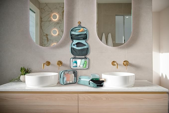 Toiletry Bag Kit Set: Hanging Travel Toiletry Bag + 311 TSA Cosmetic Liquid Bag + Ultralight Accessory Organizer Pouch