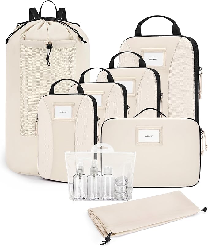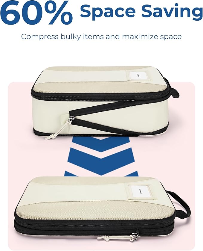 - Maximize Space - BAGSMART 6 pcs Compression Packing Cubes, a true game changer for packing, make efficient use of every inch in your luggage. The exterior zipper allows for maximum compression, just like a vacuum sealer. Simplify packing process and save time on your travels.