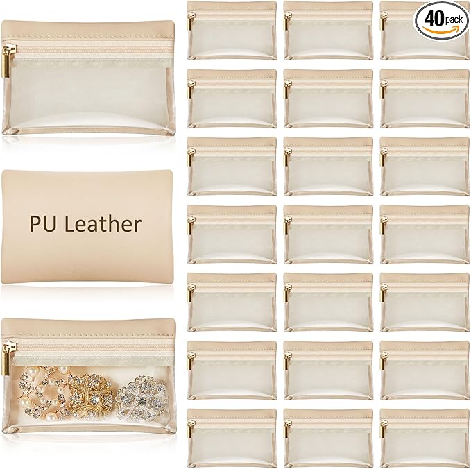 Uiifan 40 Pcs Travel Jewelry Bags Transparent PU Leather Zipper Pocket Rectangle Jewelry Storage Jewelry Organizer Box for Women Gift