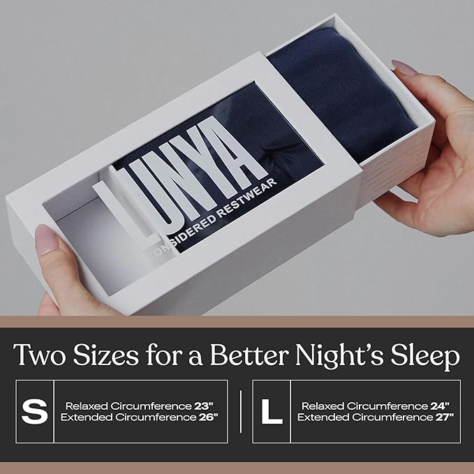 Lunya Sleep Mask with Box - Washable Silk Sleeping Mask and Headband for Beauty Routines - Thermoregulating Comfort for Restful Nights - Silk Eye Mask for Women - Small - Deep Blue