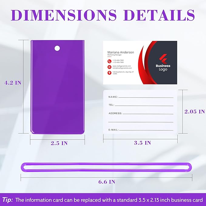 - Perfect Size:Designed with the perfect dimensions of 4.2 x 2.5 inches, our luggage tags feature a 3.5 x 2.26-inch information card slot, making it easy to swap in your business card or personal details for added convenience