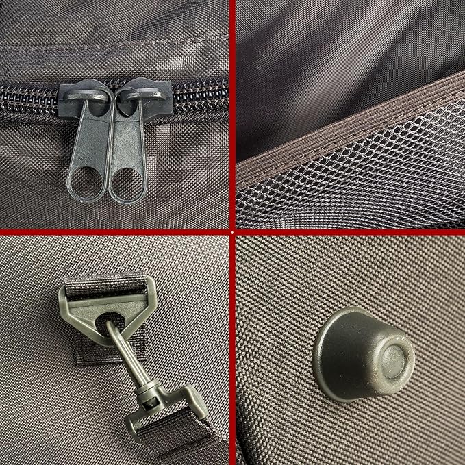 - Reasonable Design: Heavy duty self-healing zippers; Reinforced handle; Adjustable 2’’ padded shoulder strap; Reverse zippers; There are 4 main loading spaces. Separate side zippered waterproof compartment expands into the inside of the main compartment to store dirty clothes or boots away from other items, Two zipper side pockets feature multiple storage compartment, Front zipper pocket with mesh pocket inside.