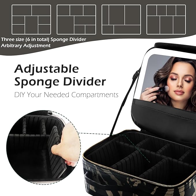 - 💄 【Customizable Makeup Storage】Organize your cosmetics effortlessly with MOMIRA's makeup case. Featuring six detachable shock-resistant EVA partitions, you can customize the storage space to fit your needs. Say goodbye to messy makeup organize bags as it protect your cosmetics from damage or leaks. The included spacious brush bag enables you to carry more makeup brushes while also maintaining the cleanliness and dryness of the makeup case.