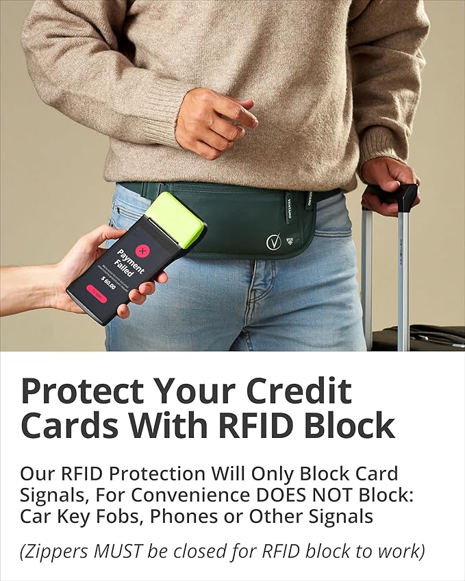 - Featuring advanced protection RFID-blocking technology, this money belt for men and women protects your credit cards from electronic theft. Whether used as a slim travel passport holder or just a bag for daily use, it's ideal for keeping credit cards, IDs, and other sensitive items secure wherever you go.