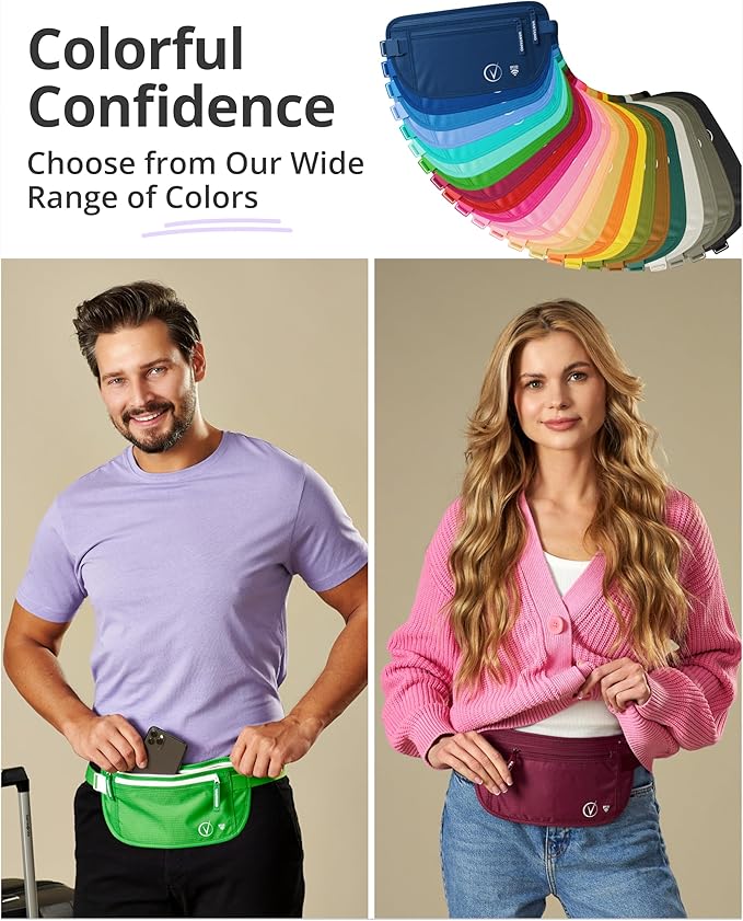 Vantamo Money Belt with RFID For Men & Women, Hidden Passport Holder for Travel, 2 Compartment Travel Fanny Pack for Women Anti Theft