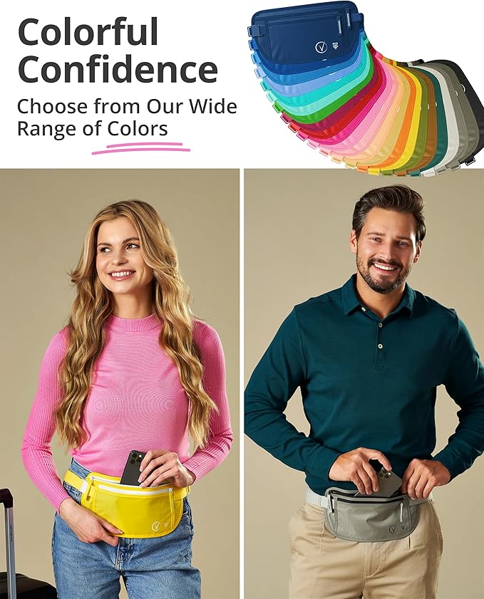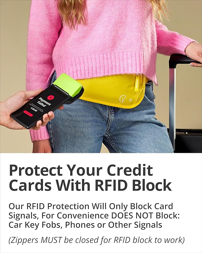 - Designed with spacious compartments, this small belt bag for travel safety gives you room for cash, cards, documents, and more. The rfid blocking pouch with multiple pockets ensures you can organize your essentials while keeping everything out of sight.