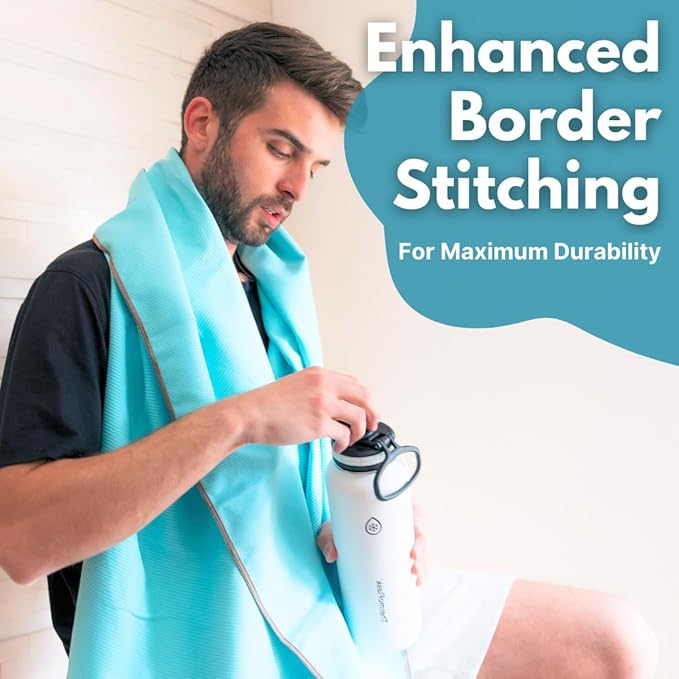 ECCOSOPHY Microfiber Beach Towel – Quick Dry Gym Towel, Highly Absorbent with Ribbed Texture, Lightweight – Ideal for Travel, Pool, Yoga, Fitness & Outdoor Adventures – 71x35 Aqua