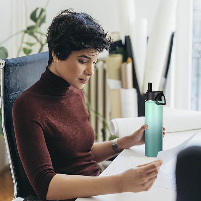 - VACUUM INSULATION DOUBLE WALL: The water bottle is designed with vacuum insulation, which can keep your drink warm for 12 hours and cold for 18 hours, perfect for you to use at home or take with you when you go out for traveling.