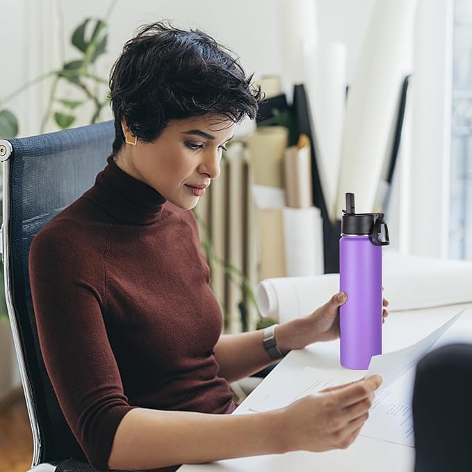 - VACUUM INSULATION DOUBLE WALL: The water bottle is designed with vacuum insulation, which can keep your drink warm for 12 hours and cold for 18 hours, perfect for you to use at home or take with you when you go out for traveling.