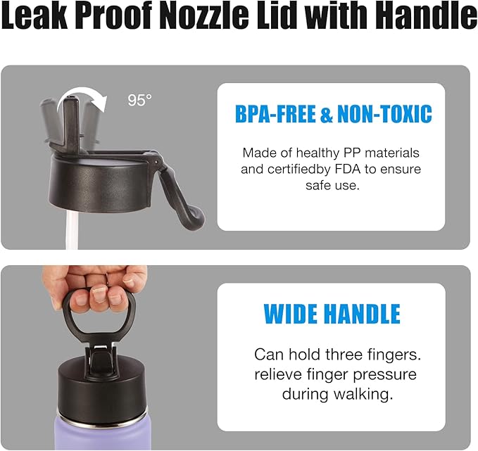 - CONVENIENT BOTTLE DESIGN: The lid is designed with a straw lid, flip-top spout makes it easy to drink, no leakage when fully closed, foldable handle, slim bottle can be easily put in your school bag, perfect fit for car cup holder, wide spout for easy refilling of water or adding ice cubes.