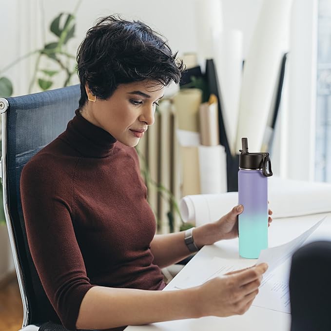 - VACUUM INSULATION DOUBLE WALL: The water bottle is designed with vacuum insulation, which can keep your drink warm for 12 hours and cold for 18 hours, perfect for you to use at home or take with you when you go out for traveling.