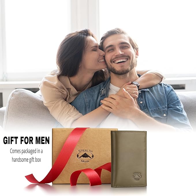 - STAYS SLIM EVEN WHEN FULL - This mens trifold wallet for men helps keep your personal and financial info safe by blocking malicious attempts to steal your identity from your chip enabled cards. The lining of this wallet blocks 13.56 MHz RFID signals which is the frequency your credit cards and IDs operate on.