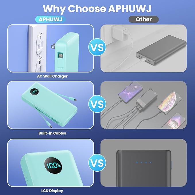 - Import Intelligent Controlling IC & LCD Display: The portable charger adopt Import Intelligent Controlling IC to prevent power bank overcharge, overvoltage, overcurrent and short circuit. [CE certified] make sure product quality is safer. It comes with a display on the front to indicate the remaining battery level, so you can be aware of and recharge the charging bank portable charger in time.