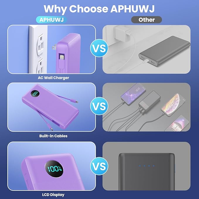 - Import Intelligent Controlling IC & LCD Display: The portable charger adopt Import Intelligent Controlling IC to prevent power bank overcharge, overvoltage, overcurrent and short circuit. make sure product quality is safer. It comes with a display on the front to indicate the remaining battery level, so you can be aware of and recharge the charging bank portable charger in time.
