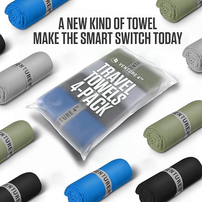 VENTURE 4TH - 4pcs Quick Dry Towels. Microfiber Travel Towels Ideal for Camping, Hiking, Backpacking, Gym. Lightweight & Fast Drying Travel Towels for Body. Compact & Easy to Pack - 4 Pack Medium
