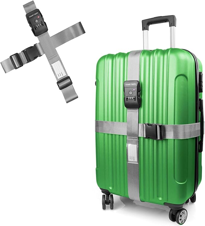 Travel Inspira Travel Belt for Luggage, TSA Approved Luggage Straps, 3-Dial Combination Locks Adjustable Suitcase Belt, Quick-Release Buckle (Grey)