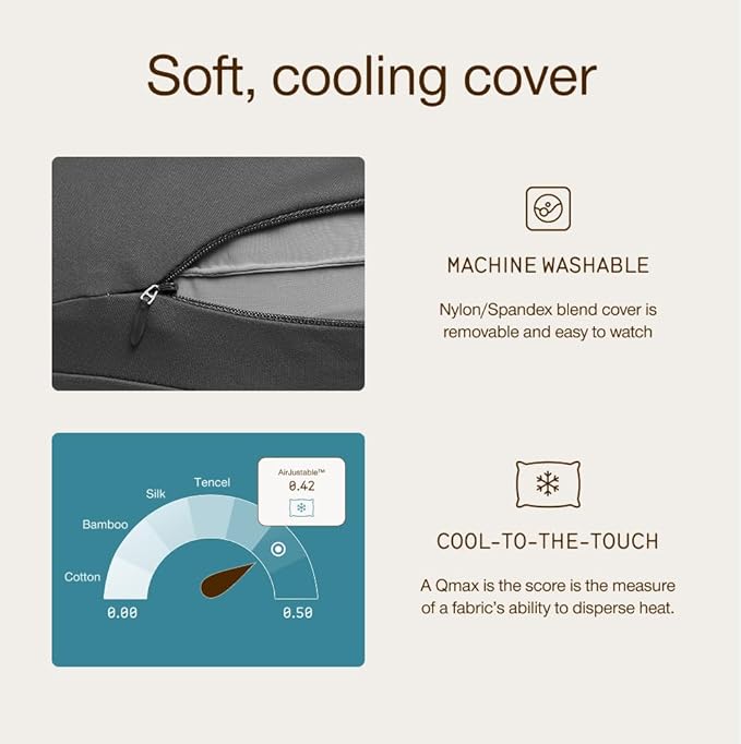 - Cooling, Soft, Removable Outer Cover: The AirJustable Travel Neck Pillow is designed with a breathable outer cover boasting a Qmax score of .42 for a cool-to-touch feel, ensuring you stay cool and relaxed throughout your journey. For added convenience, the removable cover is machine washable, making it easy to keep your inflatable neck pillow clean, fresh, and ready for your next adventure.