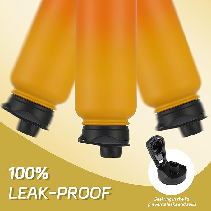 HASLE OUTFITTERS 32 oz Insulated Water Bottle Stainless Steel Double Walled Vacuum Sports Water Bottle with 2 Lids (Straw and Spout Lid) for Gym Camping Hiking(Yellow Orange Gradient,1)