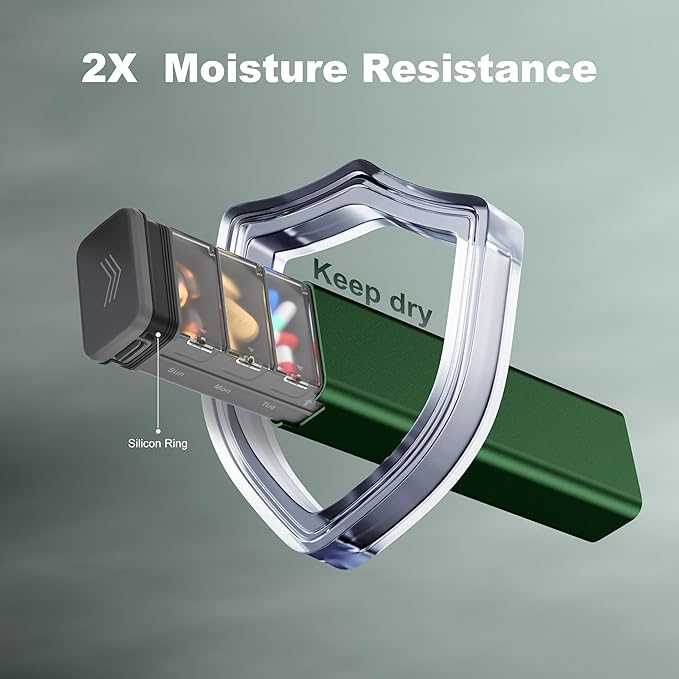 - Better Moisture-Proof and Protection: This upgraded 7 day pill organizer with ultra-strong and light aluminum tubing, separate lids and silicon rings on both sides; Increased security and moisture resistance, brings you a better using experience