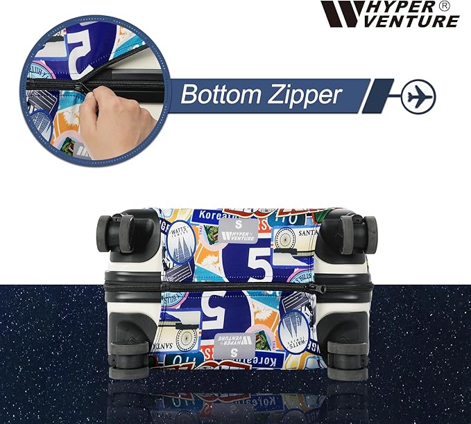 - HYEPR VENTURE luggage cover is made of 300 grams of elastic material, 15% spandex and 85% polyester fiber, designed to offer superior protection against scratches, dirt, and spills. This ensures your suitcase remains unblemished throughout your journey.