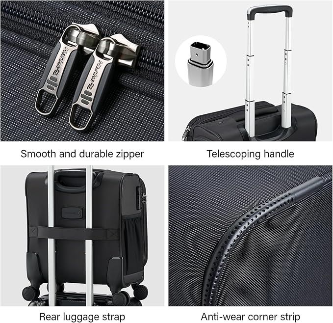 - 【Convenience Redefined】This small carry on luggage with wheels is a game-changer for travelers. With a charging/headphone port, you can stay connected on the go. The double-row silent 360° wheels ensure a smooth and quiet journey, The multi-level adjustable telescopic handle can be adjusted to different heights and usage habits. The rear handle sleeve and thickened comfortable handle not only increase convenience but also reduce hand fatigue.