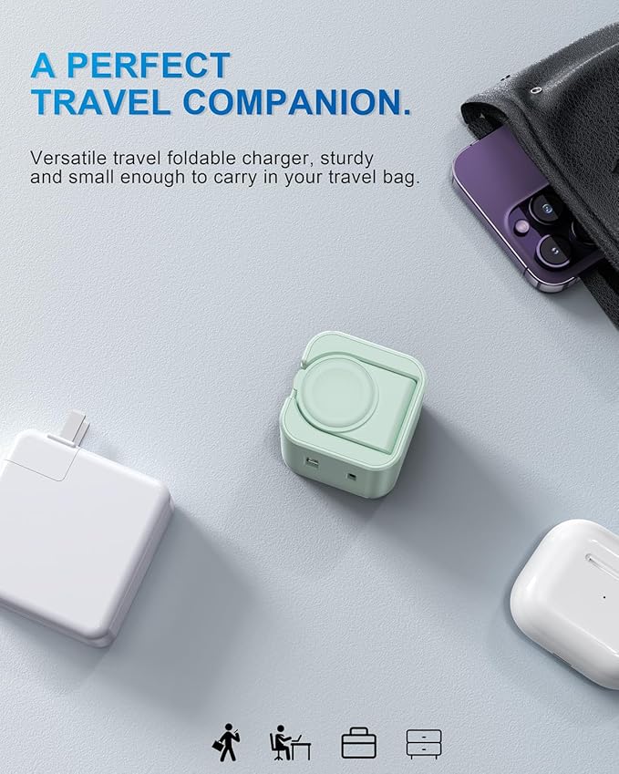 - Compact & Double-Fold Design: Both the iWatch charger & prongs can be easily folded flat, preventing scratches to your hands or bags, while taking up little space in your luggage! Ideal pocket-sized portable Apple Watch Charger Block for use on-the-go & when travelling!