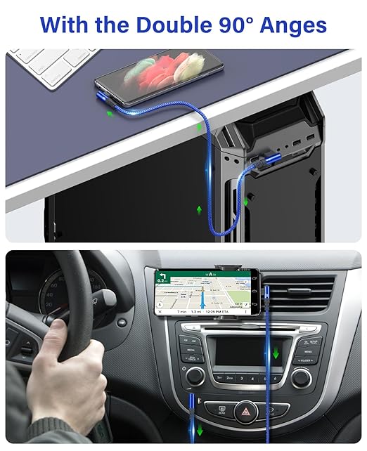 - 【Upgraded USB-C 90 Degree Design】: USB C Fast charging and data cable features a 90 degree design that enhances the connection and stability while preventing unnecessary stretching or damage. It also allows users to use their phones or tablets without being restricted by the cable.