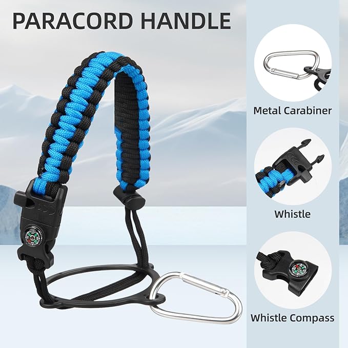 - The large capacity gallon water jug comes in various sizes, including 50 oz, 64 oz, 87 oz, and 128 oz, with a range of colors to choose from according to your need. All sizes of bottles equip with a paracord handle and a pouch for easy carrying