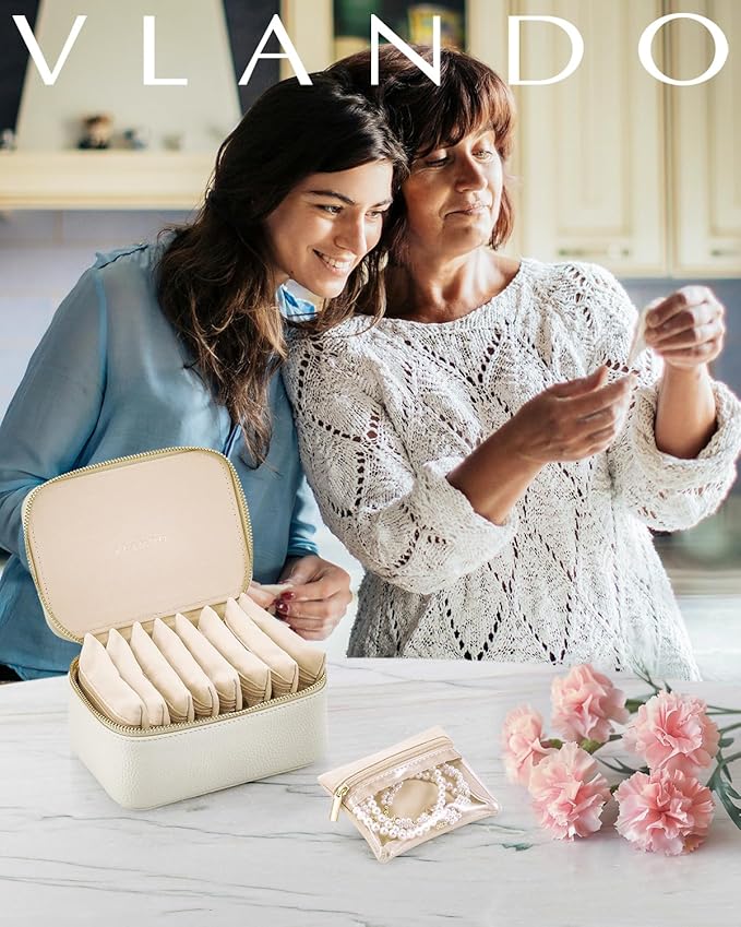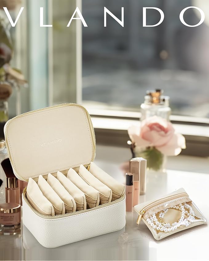 Vlando Gifts for Her,Travel Jewelry Case with 8 Velvet Jewelry Bags Jewelry Travel Organizer Box for Girls Jewelry Box for Rings Earrings Brides Gifts Birthday Gifts for Women Teen(White)