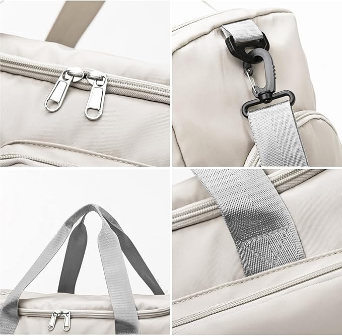 Travel Duffel Bag with Shoes Compartment Sports Gym Bag with Dry Wet Separated Pocket for Men and Women, Overnight Bag Weekender Bag Training Handbag Yoga Bag - White Gray