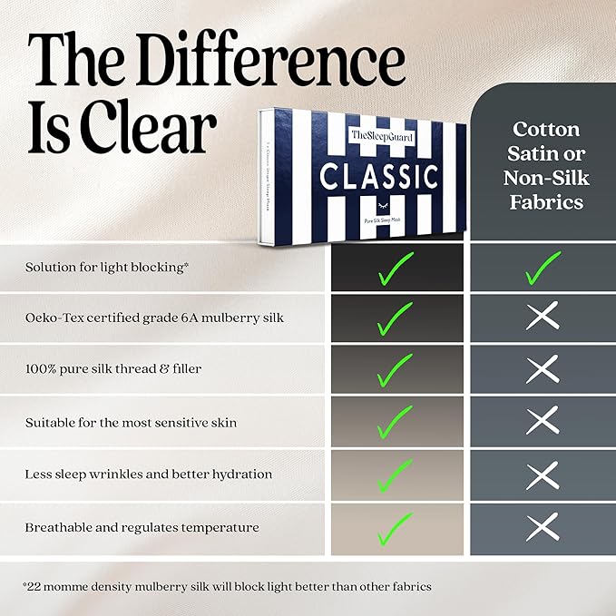 - ✅ INVEST IN YOUR SLEEP - Experience TheSleepGuard difference with our luxury sleeping masks. Crafted from the highest grade 6A Mulberry silk at 22 momme and certified by Oeko-Tex to ensure you sleep soundly. Remember, better sleep leads to a better you.