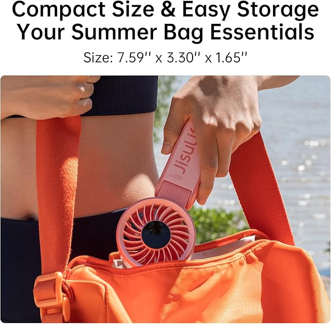JISULIFE Handheld Fan Life7 – Ultimate Flexibility: High-Power Motor, LED Display, 19.5 Hrs Cooling, 5000mAh Rechargeable, 5-Speed, Foldable Design, 3-IN-1 Portable Fan for Travel Cruise Beach(Pink)