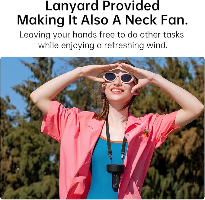 - 3-IN-1 Solution: Hang it around your neck for hands-free cooling or use it on your desk for a focused breeze; Its innovative design allows for handheld use, desktop placement, or worn around the neck, providing a 3-IN-1 solution for beating the heat