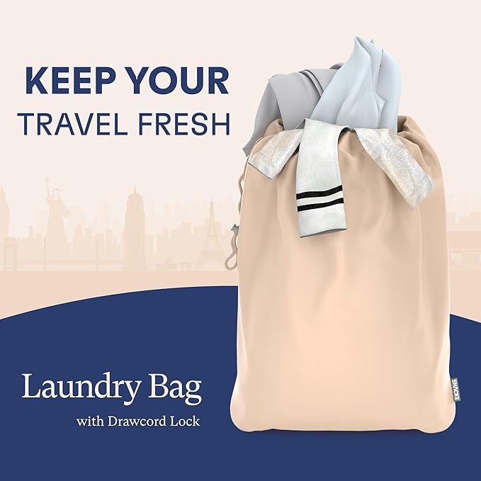 Shacke Premium 8 Packing Cubes Set - Lightweight Mesh Travel Luggage Organizers with Laundry Bag, 8-Piece Suitcase Storage System (Nude Biege)