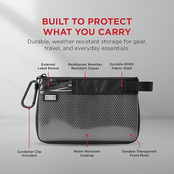 - ACCESSIBLE - The Transparent material on the front side of GoBags offer visibility to the internal items, so you always know where your gear is.