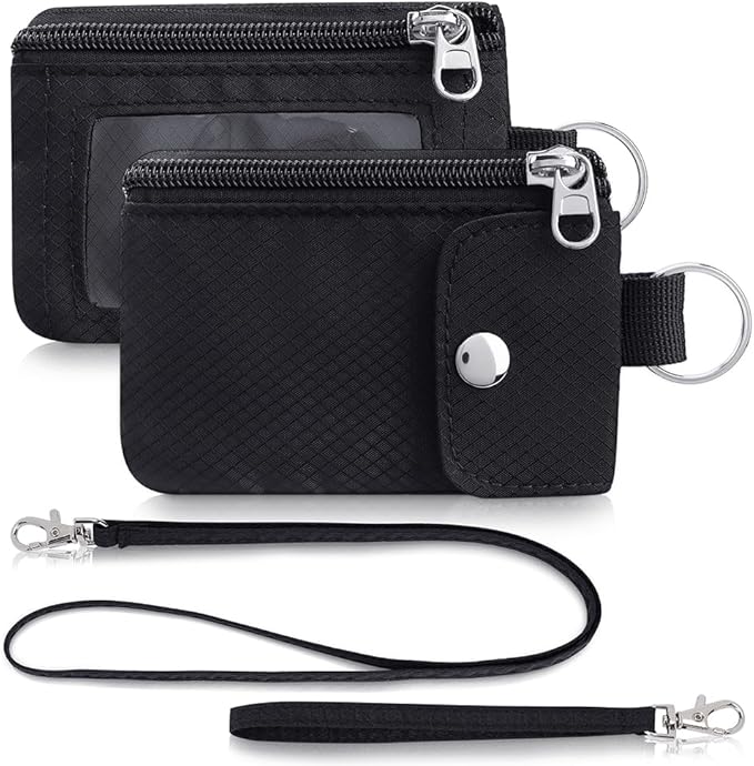Minimalist Wallet For Mens Womens, Keychain RFID Blocking Zipper Small Wallet with ID Window 2 Lanyards,Water Resistant Travel Cash Card Coin Case Boys Girls