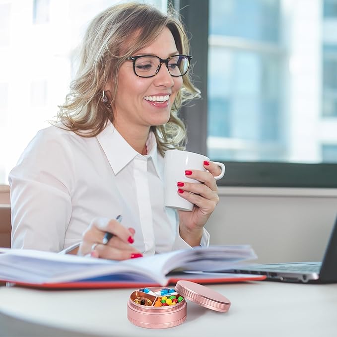 - Secure Closure: The pill box has secure and reliable closure mechanisms: screw-on lids. It ensures that the pill case remain tightly closed in your purse or bag. designed with texture for easy open.
