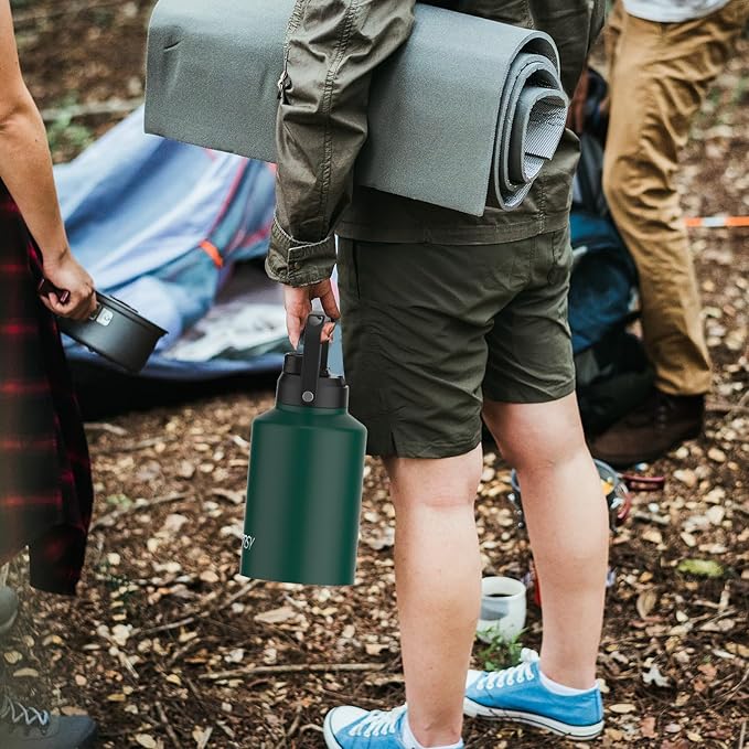 WATERSY 1 Gallon Water Bottle Insulated(Cold for 48 Hrs),BPA Free&Leak Proof,128oz Stainless Steel Water Jug,Big thermo,Large Water Bottle with Handle for Gym,Hiking,Camping&Travel,Dark Green