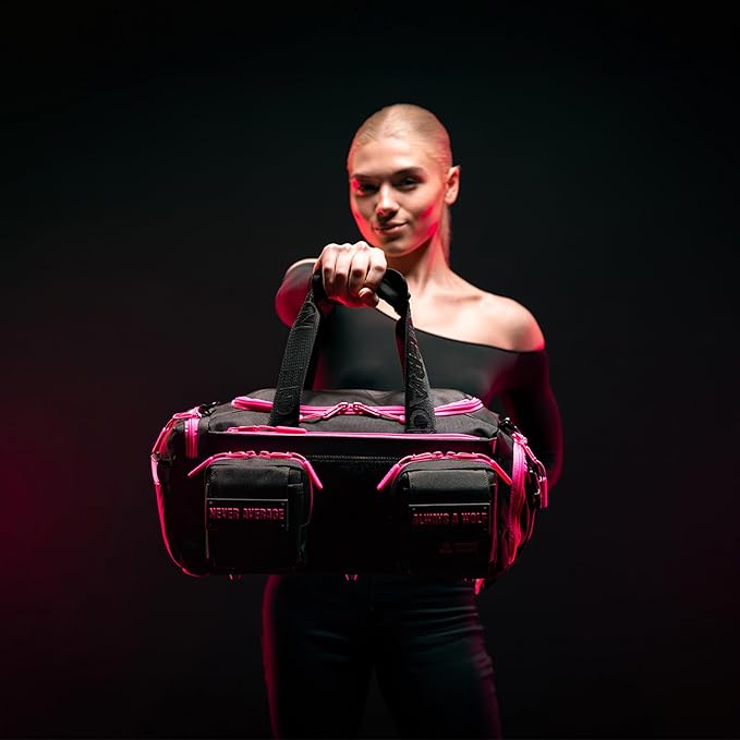 WOLFpak 20L Mini Duffle Bag for Gym & Travel | Waterproof Carry-On Weekender Bag with Shoe Compartment, Hard Bottom, and Tactical Molle System (Neon Pink)